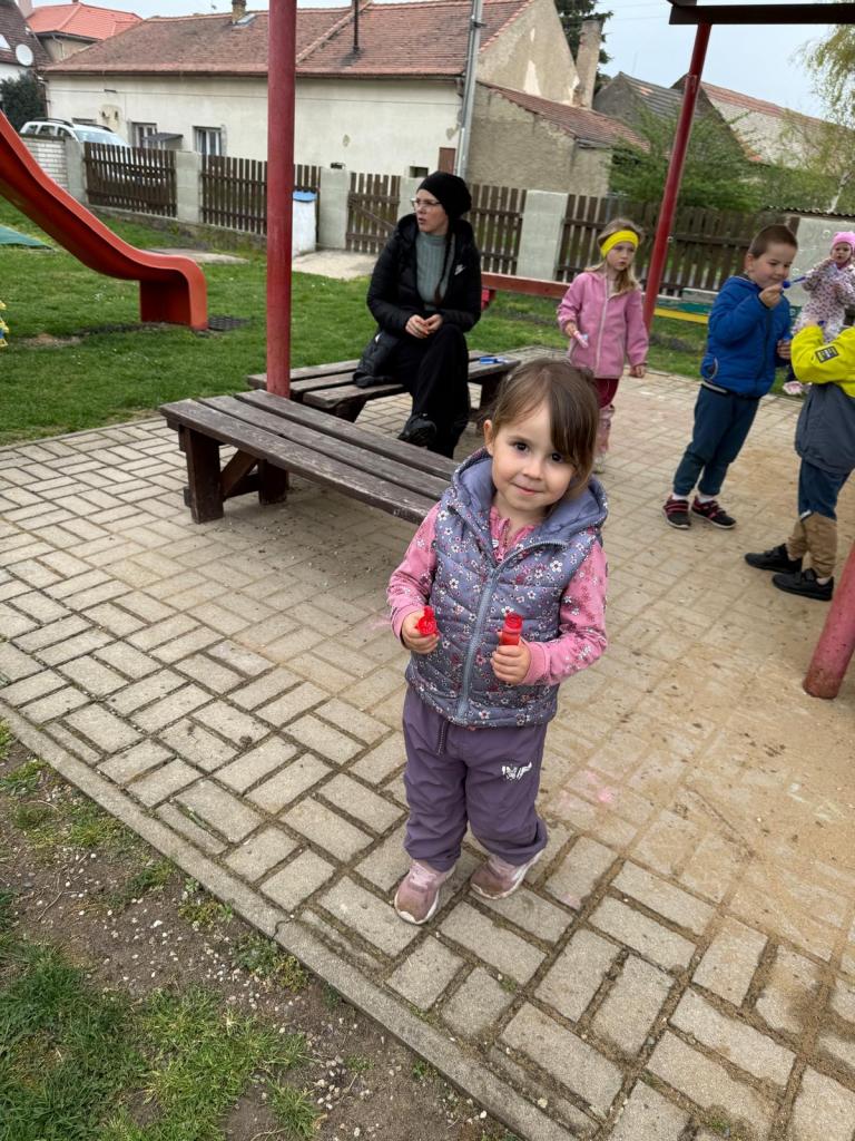Plnili jsme úkoly a za odměnu nám Zajíček nechal bublifuky.